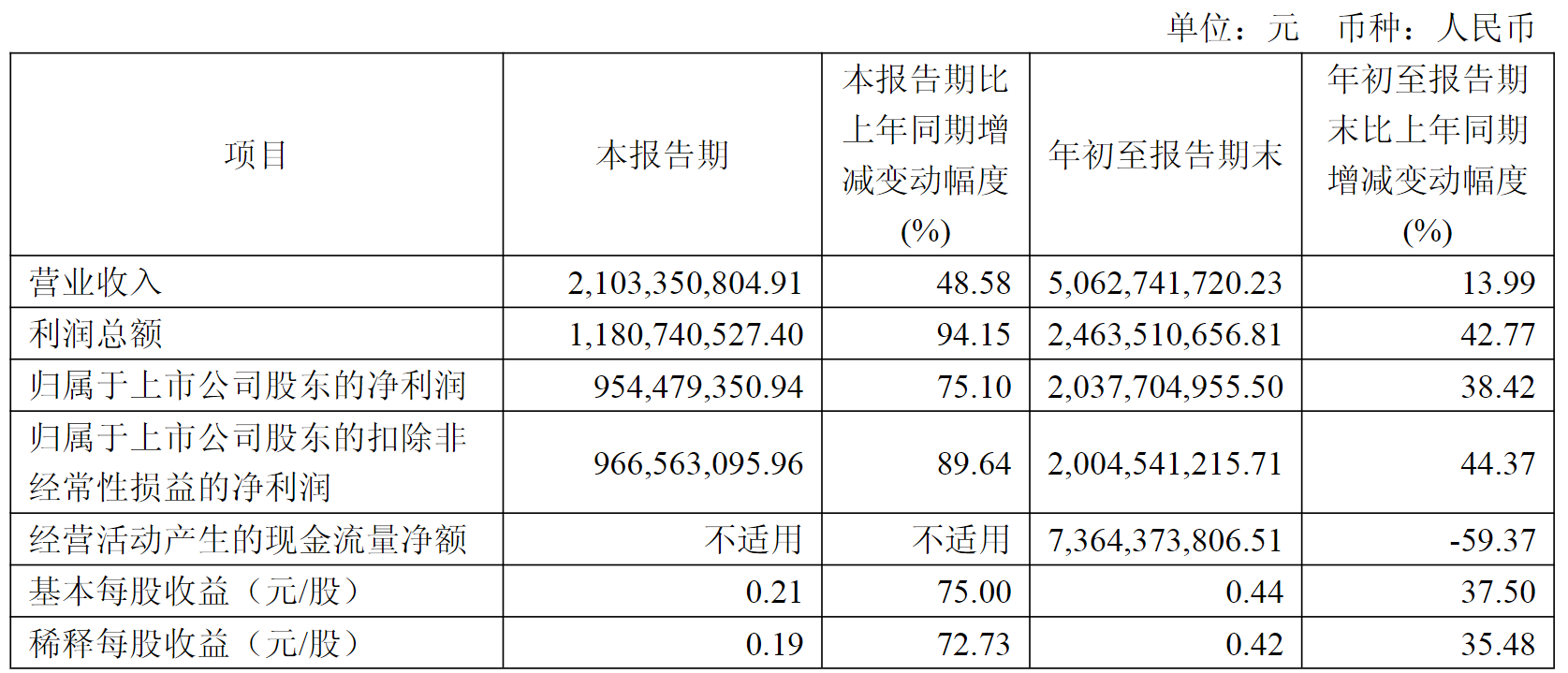 今年前三季度,财通证券实现营业收入50.63亿元,同比上涨13.99%;归母净利润20.37亿元,同比上涨38.42%,创出历史新高;仅看第三季度,公司营业总收入达21.03亿元,同比增幅高达48.58%;净利润9.54亿元,同比增长75.10%。